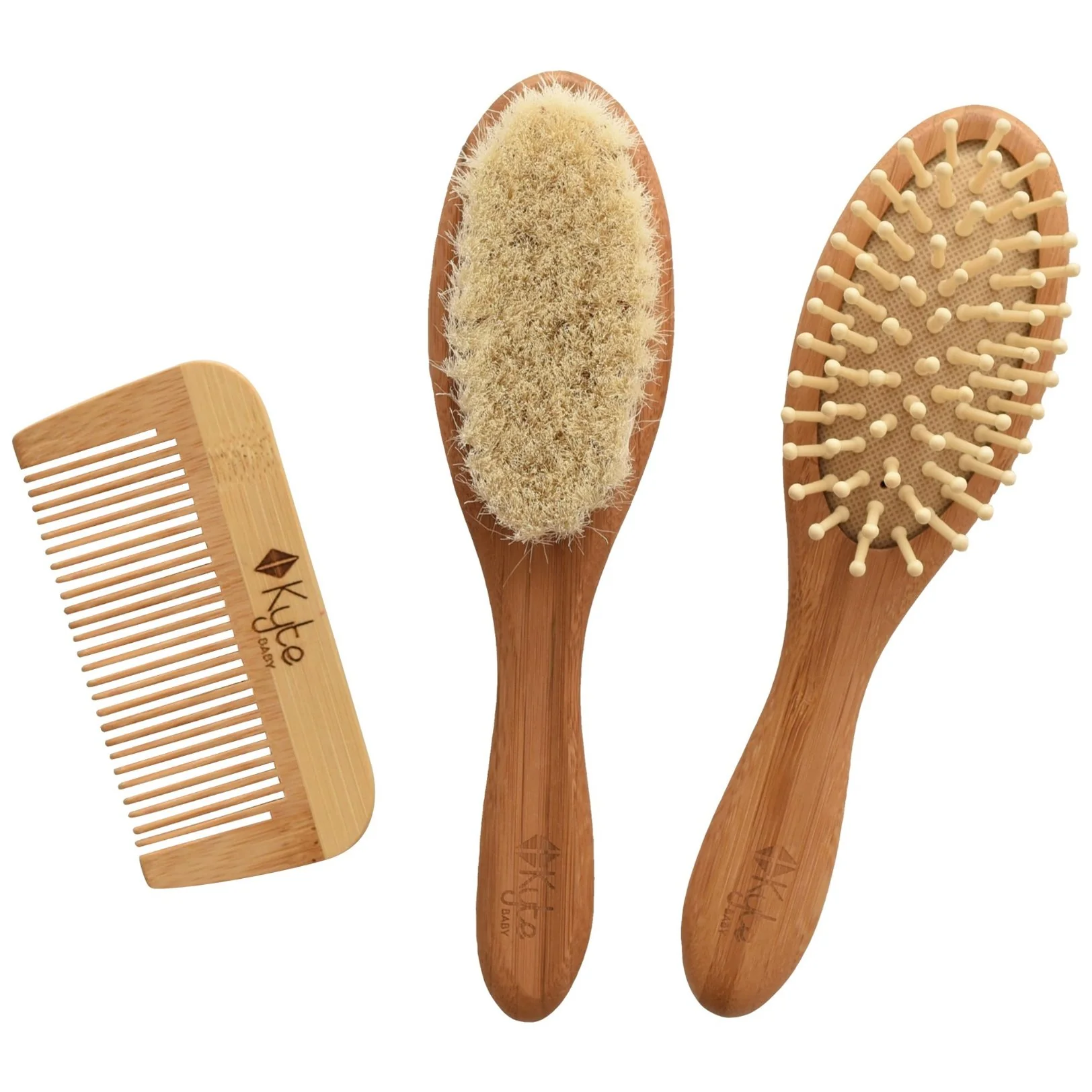 Bamboo Hair Brushes + Comb Set - 3 pieces by Kyte Baby